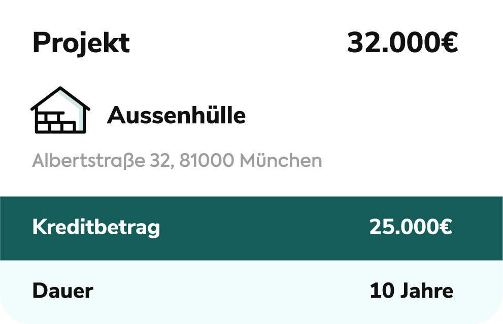 Unsere Finanzierungslösungen decken eine breite Palette von Bau- und Renovierungsprojekten ab, einschließlich energetischer Sanierungen, Installationen sowie Innenraumrenovierungen wie Küchen und Badezimmern und anderen Dienstleistungen.